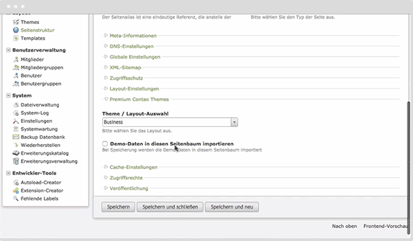 Mit nur einem Klick fertige Demos/Layouts importieren. Optional inklusive Demo-Inhalte.